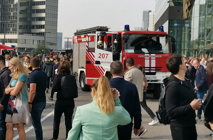 Сотрудники БЦ уже все вышли на улицу и толпились стараясь не очень сильно мешаться под ногами огнеборцев, народу оказывается в здании работает дофига много, как написали в новостях 10 тыщь, но наверно меньше.