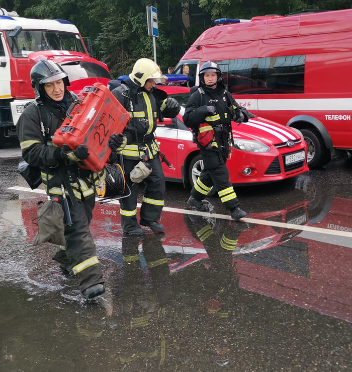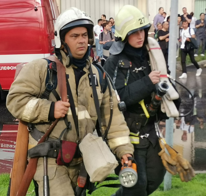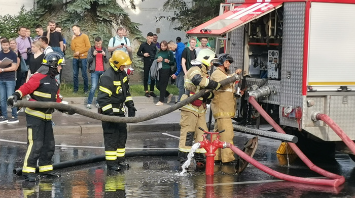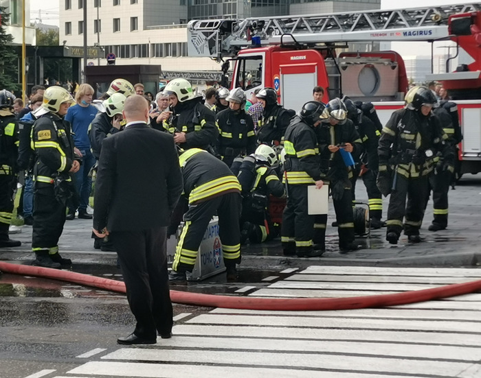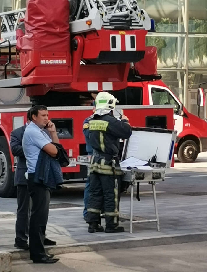 Со стороны улицы особенно ничего не происходило, только пожарные ходили туда-сюда в сопровождение охраны здания и все. Самое интересное было скрыто от глаз.
