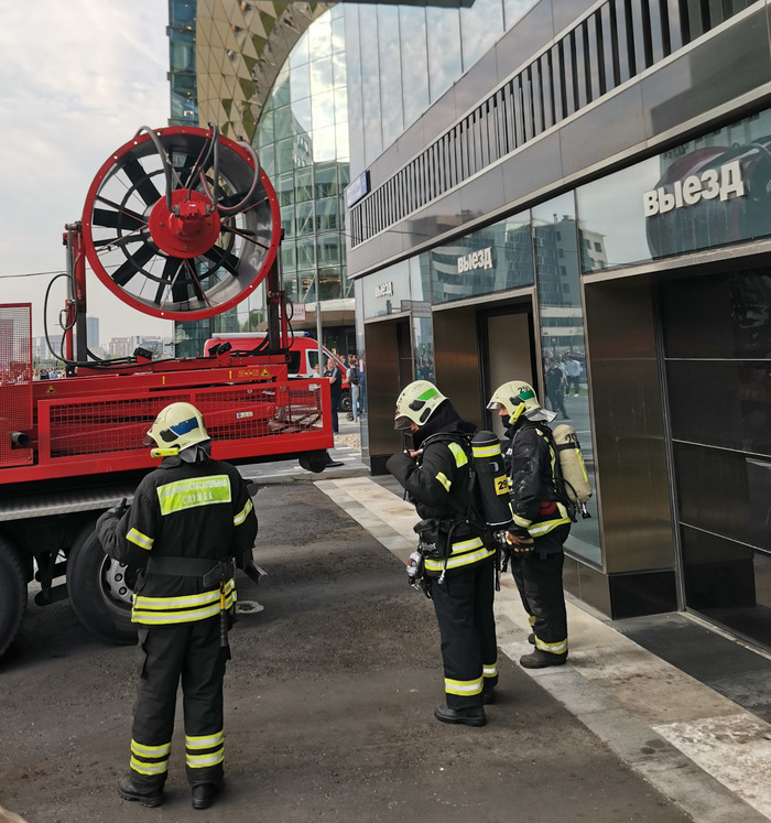 Часа через два с половиной всем сказали что можно расходиться по рабочим местам, пожарные начали собирать свое оборудование и как то буднично покидать место тушения, мега вентилятор опустили на землю и оставили дуть внутрь паркинга.