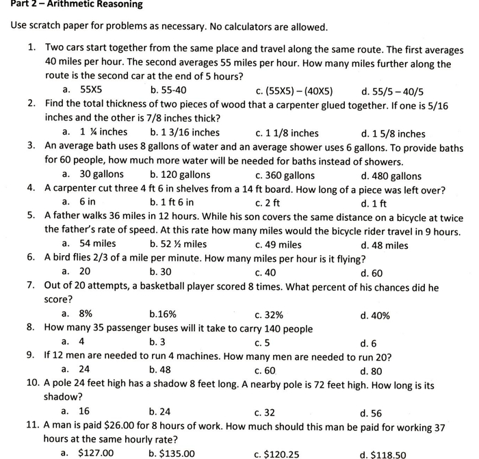 Arithmetic Reasoning (AR) - 16 questions with a 36 minute time-limit.