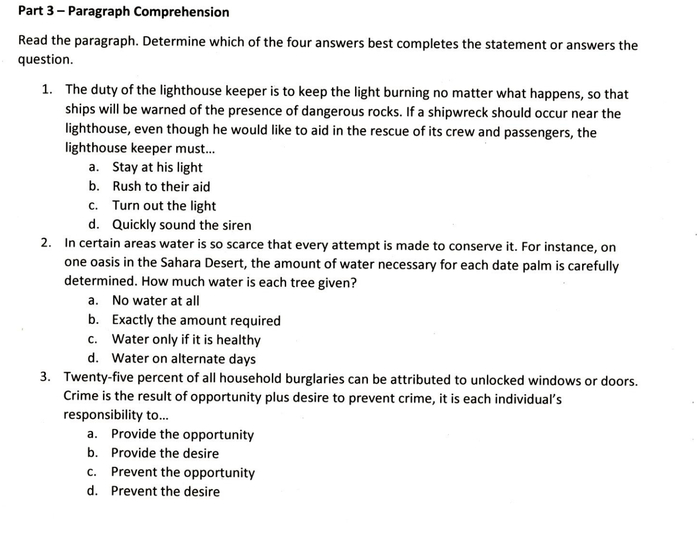 Paragraph Comprehension (PC) - 15 questions with a 13 minute time-limit.