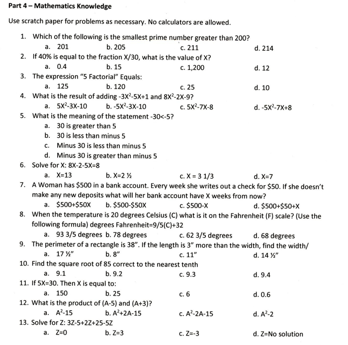 Mathematics Knowledge (MK) - 25 questions with a 24 minute time-limit.
