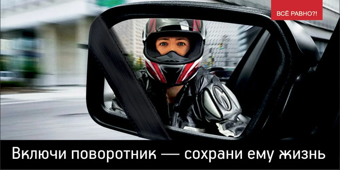 Дело в том, что смотрели и даже видели мотоцикл, но не осознали этого. Вы смотрели в зеркало в поисках автомобилей и мозг просто выключил из числа возможных помех мотоцикл - это же не автомобиль. Поэтому Ваш маневр без поворотника на якобы пустой дороге может стать для мотоциклиста неожиданным. Ладно, если мотоциклист смог просчитать вероятность Вашего манёвра и принял какие-то меры (т.е. подумал за себя и за того парня). Но иногда маневры совершаются не только без включенного заранее поворотника, но ещё и очень резко. Что не оставляет мотоциклисту времени на торможение/уворот. А потом получается примерно так: