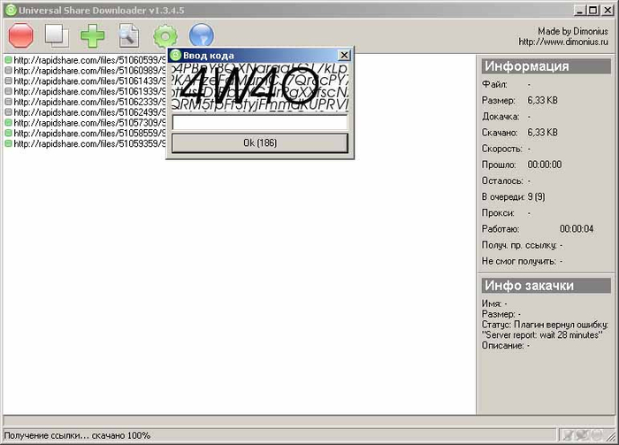 По-настоящему олдскулы сводит при упоминании USD - Universal Share Downloader. Вот тут проведены часы за настройкой и регулярным обновлением плагинов. Но зато как приятно было видеть зеленый список завершенных закачек вместо просмотра рекламы для каждого файла, ожидания по минуте - а когда и по 24 часа, переподключения роутера для смены ip. Плагины USD задавали правила для автоматизации. Часто для некоторых файлообменников и капчу можно было обойти.