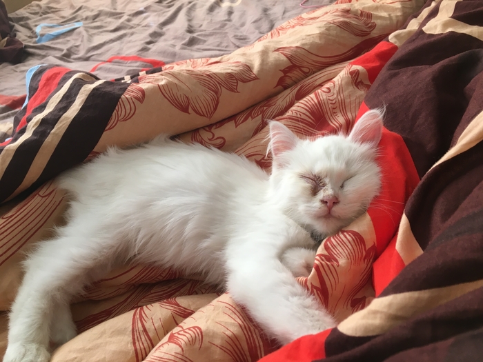 В общем, присвоила я кота и не жалею. Чудесный кот) Только цветы жрет и хулиганит, но с ним живется весело) Мы переехали чуть позже в ипотечную трешку сталинку, места у кошек навалом, бегают галопом теперь)