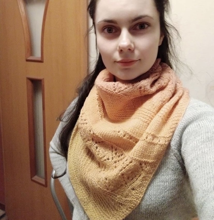 4. Платье с градиентом из итальянской тонкой твидовой пряжи, тоже сверху вниз, с круглой кокеткой. Для дочки. 3 недели вязала.