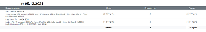 Самые внимательные (и знакомые с устройством компьютера) могли заметить, что тут нету видеокарты и оперативки. Так же эти же люди, уверен, обратили внимание на то, что материнская плата под DDR5 память. Да да, оно самое. Можно и это посчитать, но там нету таких наглядных ценников