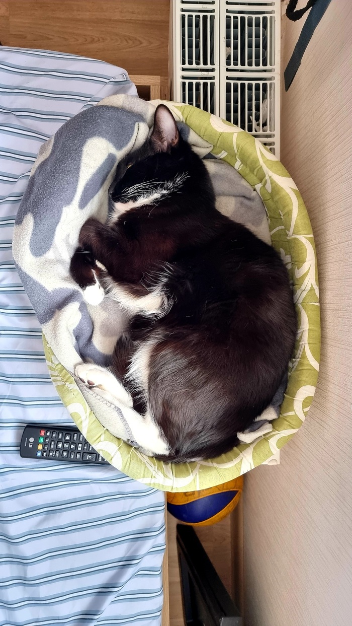 Показываю кошек. Рыже-белое чудо зовут Апельсинка, диванная кошка. Живет в диване три месяца, очень дикая. Выходит только, когда все спят или на работе. Дружит с кошкой Котлеткой (черно-белая). На фото первый раз рискнула зайти в спальню, когда мы не спали. Первые фотодоказательства, что у нас больше одной кошки в доме😋 А на последнем фото Котлетка предаётся любимому занятию - сну около батареи.