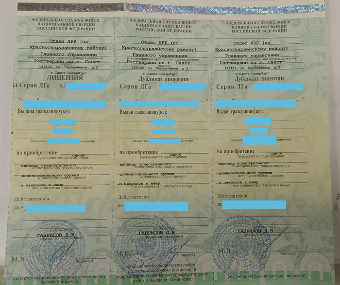 ВНИМАНИЕ ! при подаче заявления через ГОСУСЛУГИ выдача лицензий происходит согласно "Приказу Росгвардии от 18.08.2017 N 359" https://base.garant.ru/71770600/, конкретно пункты 9 и 32, и никакие требования обязательного посещения отдела лицензионно-разрешительной работы с принесением им каких-либо документов, паспорта (у Вас аккаунт на ГОСУСЛУГАХ подписан простой электронной подписью) справок, заключений, договоров и прочего НЕЗАКОННЫ согласно Федерального закона от 27.07.2010 N 210-ФЗ: