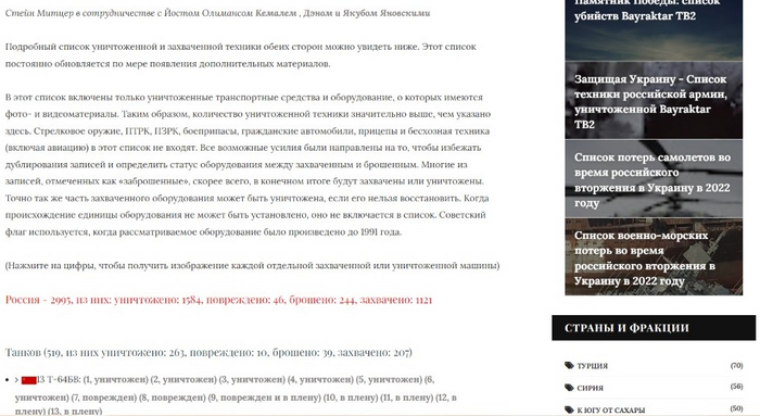 Данный ресурс активно муссируется в Укр пабликах , и вбрасывается к нам, дабы вразумить глупых Россиян, что армия Украины непобедима и нанесла армии ВС РФ катастрофический ущерб.