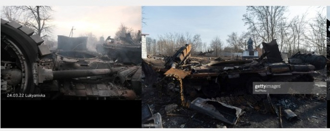 Ну чтож? я думаю сразу становится очевидно что во первых это танк 13 Т-64БВ, и не менее очевидно что он принадлежит ВС РФ, и чисто по нелепой случайности, в "пруфе" нет ни серийного номера машины, ни геолокации. ладно . далее вижу массу разбитой техники без опознавательных знаков, техники которая находится в том числе на вооружении ВСУ.