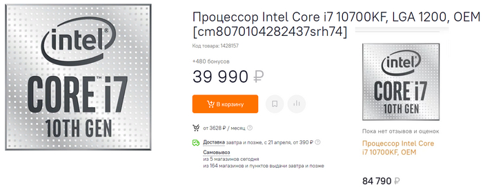 Дорогие модели снизились еще больше, например i7 10700KF упал с 84790 до 39990р. Очень жаль тех, кто, возможно, взял в марте железо по таким ценам.
