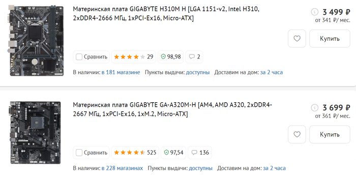 Погнали дальше: материнские платы. Тут вообще все здорово, некоторые популярные модели стоят даже чуть дешевле февраля! Например вот эти модели были дороже на 300р.