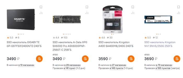SSD. Вот тут все плохо. Снижение цен самое минимальное. 120 Гб стоит как 240 в феврале. 240 как 480 и так далее.