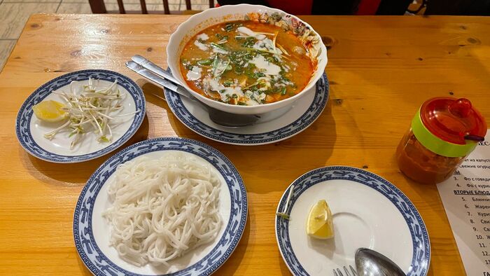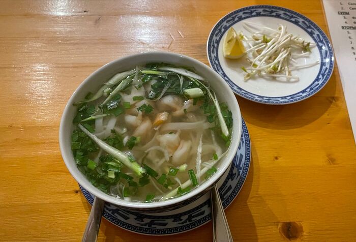 Подруге принесли маленькую порцию Фо, ибо нехуй безнес-ланч заказывать, ага.