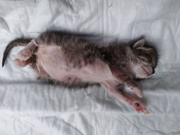 Спустя пару минут пришел адрес и фото. Увидев его - моя коллега смогла воскликнуть только очень нецензурное слово (в соответствии с правилами сообщества Котомафия :-) ) и что-то там дальше неразборчиво про неонаталов. Котенок и впрямь казался только-только оторванным от мамкиной сиськи. Очень нецензурное слово прозвучало уже от меня. На ходу одеваясь и дожевывая вкусняху впихиваемся в наш авто-мо-биль и гоним на север Питера - благо от нас до пр. Энгельса 12 минут по вечернему городу.