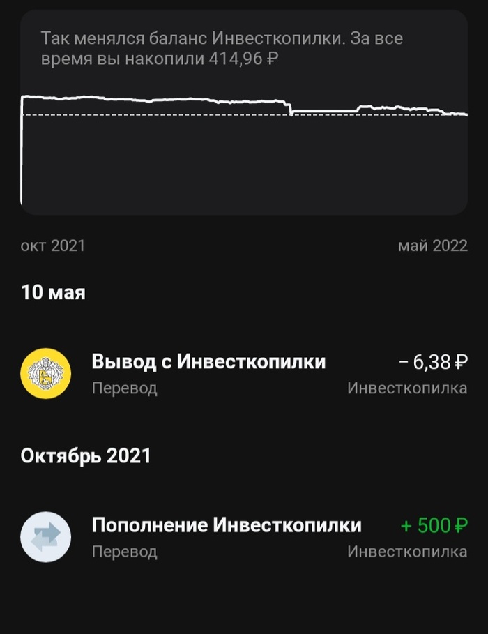 Установил приложение, и решил для пробы положить 500р в Инвесткопилку.