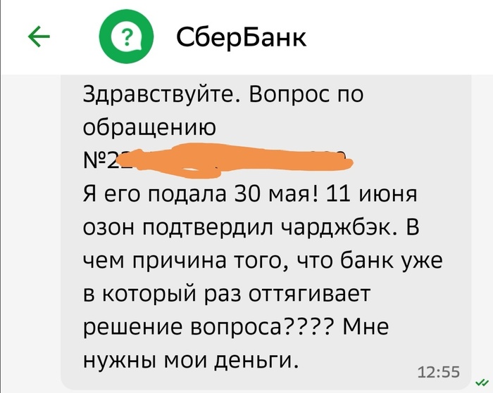 Тем не менее, я сразу же обратилась в банк, показывая сообщение, направленное маркетплейсом. Но ни горячая линия, ни сотрудники офлайн-банка вообще не поняли суть претензии со стороны OZON. С их стороны-то все "чисто", как они выразились. Поступил запрос от маркетплейса, они провели платеж. На вопрос, почему не было кода подтверждения и уведомлений они ответили, что заказы были совершены с официального сайта OZON и платежи с этого маркетплейса обрабатываются автоматически. Но обращение все-таки зафиксировали и обещали дать ответ до 17го июня.