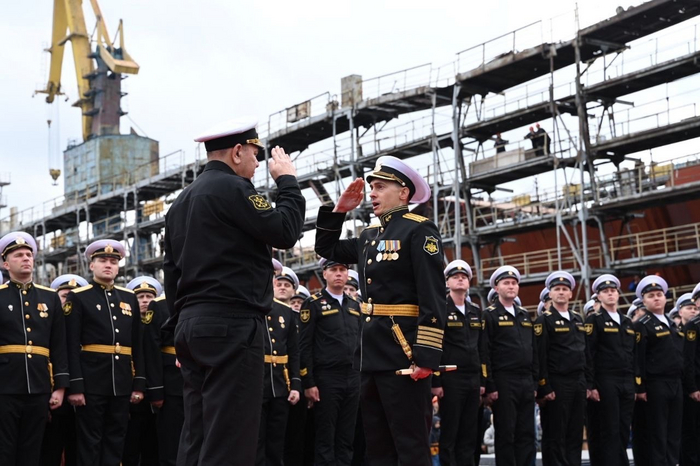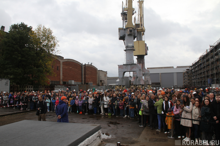 Крестной матерью корабля стала начальник отдела по связям с общественностью и внутрикорпоративным коммуникациям "Северной верфи" Екатерина Козырева.