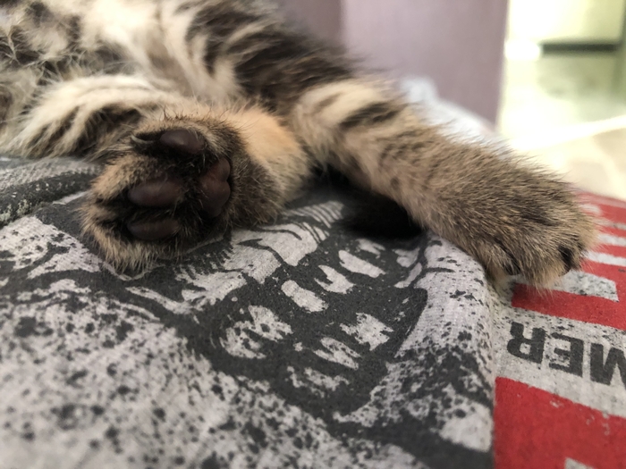 У котенка хороший аппетит, лопает смесь с удовольствием. Активная, крутится, вертится, пытается найти мамку. Успокаивается и засыпает когда находит грелку. По маленькому тоже ходим неплохо, но вот по большому пока сходить не удалось. Вчера утром последний раз очень хорошо сходила у ветеринара. И до этого нам на руки немного пока катались по ветеринарам. Массаж делаю но боюсь что нибудь передавить, по этому, наверно, излишне осторожничаю в какие то моменты.