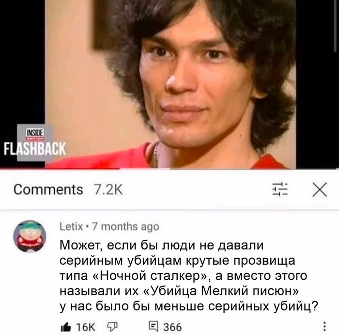 Но чем больше общество в среднем обижает, оскорбляет, делает изгоями людей, по разным причинам посещающих ПНД и вообще обеспокоенных своим душевным здоровьем, тем меньше шанс, что очередной Чикатило, потрошитель, педофил, другой пациент с навязчивой манией, вовремя дойдет до врача, будет прилежно пить таблетки, купируя маниакальные периоды и станет безопасным для всех вокруг пациентом, а не серийным преступником.