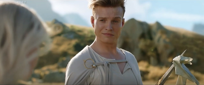 Начинается сериал с флешбеков Галадриэль, когда она ещё девчонкой запускает волшебный кораблик на воду, который топят её сотоварищи, за что закономерно рискуют получить по ебалу. Спасает всех её брат Финрод с иллюстрации выше, и объясняет Галадриэли смысл добра и зла, тьмы и света. В принципе по части каноничности тут сложно доебаться – эльфы не были божьими одуванчиками и раздавать по ебалам умели, особенно своим. Кроме Финрода, выглядящего как реально футболист валинорской сборной, остальные, даже коротковолосые эльфята смотрятся, будто визуально эльфов спиздили с христианских ангелов - ну типа херувимы и вся хуйня. И если подумать так - да, этот образ почти всегда работает. Кроме футболиста Финрода.