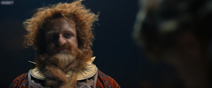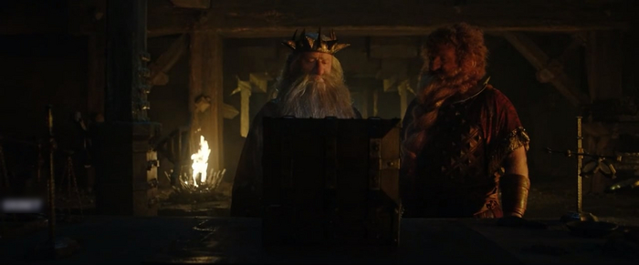 Хоббитянка тем временем продолжает коммуницировать с дедом, владеющим магией, но не владеющим собой, и тот пытается не то карту из светлячков начертить в небе, не то ещё что, но у него не выходит (господи, лишь бы не гэндальф!!!). Дурин беседует с папашей на предмет помощи эльфам, и папаша, сбежавший из грузинского мультика про полцарства, ожидаемо тоже сидит на измене и помогать эльфам не хочет, тем более что они нашли какой-то макгафин, который нам не показывают (но один хуй мы догадались, что речь про митрил):