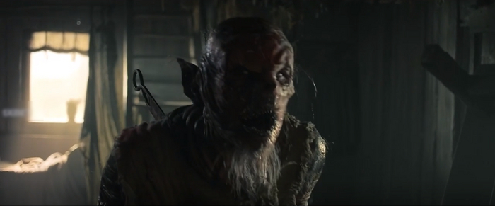 И вот знаете что? Я готов подняться на эшафот, но схватка с этим орком выглядела круто. Во-первых – сам орк выглядел ебать каким жутким. Джексоновские (как и положено в мономифе) представляли собой чаще смазку для меча Арагорна, а Сэм их вообще пиздил сковородкой. Здесь же я полностью почувствовал пиздец ситуации, когда у тебя из-под пола вылез орк. Он реально создавал ощущение ОПАСНОСТИ - и это передано было на десяточку. Лишь по удаче его удалось одолеть, а голову предоставить селянам, чтобы собрать шмотки. Раненый сын перед уходом ещё раз достал меч, и вдруг, при попадании крови на него, обломок начал вырастать как в настоящем фэнтези. Про меч пока больше никто не знает, кроме друга, который не сдаст (сарказм).