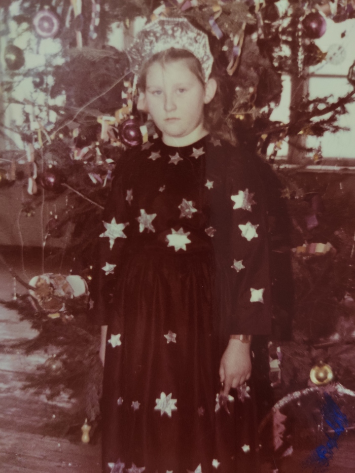 Пятый класс. Учились только в форме. Были какие-то праздники, которые отрабатывали по субботам. И вот такая суббота, а мама постирала мою суконную коричневую форму накануне. И она не успела высохнуть.