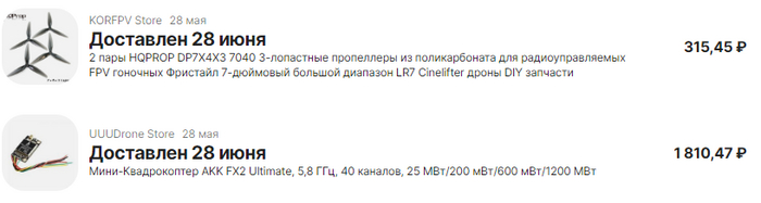 Этот дрон и всё к нему мне обошлось в 42600 из них стоимость дрона почти 11к, и это грубо говоря все по минимуму, только шлем купил не дешевый, а средний по цене, хотя если чуть добавить, там уже и очки средние можно было купить. Паять ничего не паял, только настройки, но даже для этого пересмотрел кучу ютуб каналов, как и чего и очень много нюансов от настройки аппаратуры (ее не только забиндить с дроном надо, но еще и настроить под себя каждую клавишу или переключатель, и в самой аппаратуре покопаться в настройках и в настройках дрона и назначить какой тумблер за что отвечает), Да даже с аккумуляторами, на сколько их надо заряжать, до какого значения на них можно летать и на каком значении их нужно хранить. Вообщем информации для освоения не мало надо, но если увлекся, то это реально интересно.