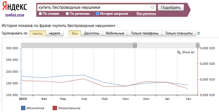 Как я говорил выше, за три года я продал около 350 тысяч пар наушников. То есть рынок наушников нифига не растет, а даже падает, – это доказывает тот же вордстат. А мы – растем.