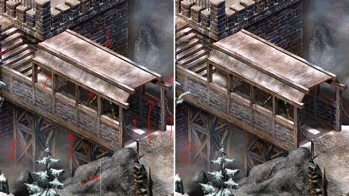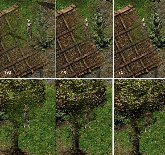 Устранение шума текстур на дробных масштабах игры (те, что были введены модом, в дополнение к трём изначальным масштабам). Я шёл к решению этой задачи целый год (!). Это, конечно игру «до неузнаваемости» не изменило, но позволило играть более комфортно.