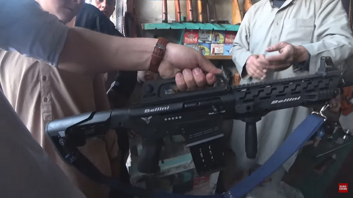 Самым необычным товаром он назвал другой турецкий полуавтомат. Во многом копирует AR-15. В комплекте два магазина. На самом дробаше можно видеть тактикульную рукоять и, по всей видимости, лазерный целеуказатель. По цене тоже 25000 афгани.
