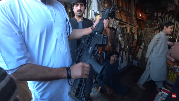 Вчера смотрел видос о продаже оружия на афганских рынках. Парень, говорящий на фарси, провёл американскому трэвел-блоггеру экскурсию по оружейным палаткам на местном рынке.