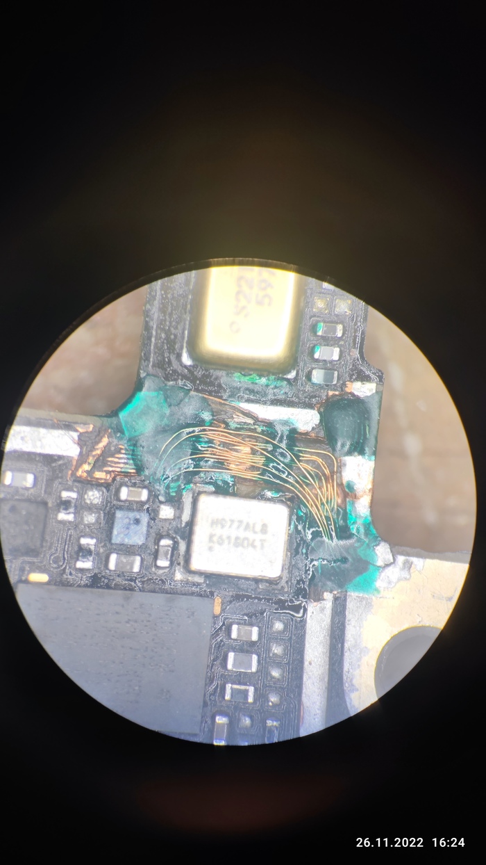 Паял тактильно, без визуальной ориентировки. Далее будет очищено и заламинировано в паяльную маску. Провод даже тоньше моего собственного волоса.