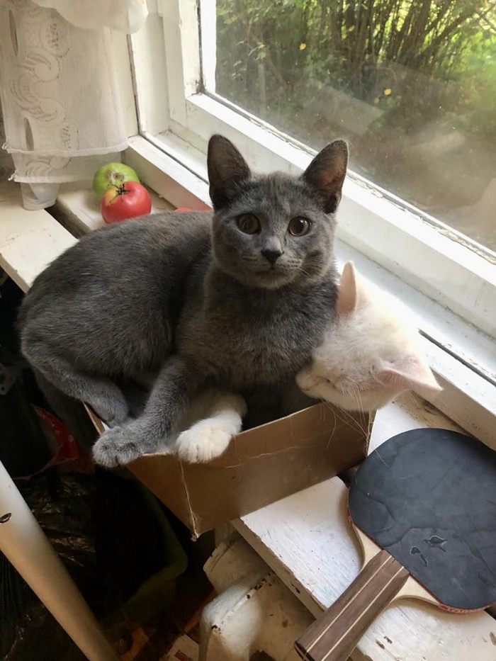 Потом мама к нему по работе зашла и увидела кошку с шестью серенькими котятами. Тоже поделилась, что у нас котенок и как дети рады. Дядька быстро смекнул, что к чему.
