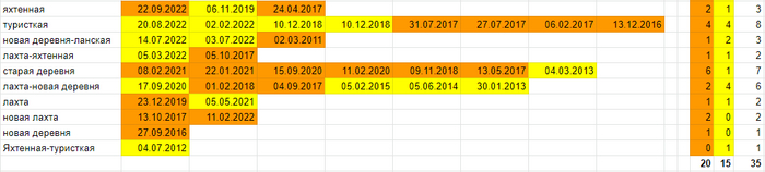 Сразу скажу о небольшой сложности. Очень часто указывается перегон между станциями. Или платформами. Причем часто указывается весьма длинный участок между станциями с расположенной по середине - платформой.