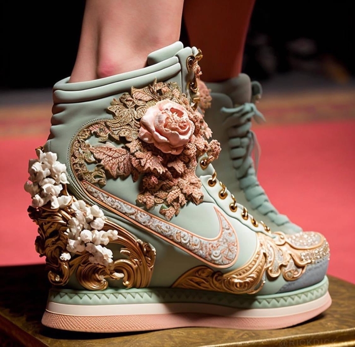 945 cryzovnic ИИ рисунки ИИ создал новый дизайн Nike x Balmain в стиле рококо 3 года назад Показать полностью 10 Мода Дизайн Обувь Nike Искусственный интеллект Длиннопост 20 10 8 2 Ещё 0