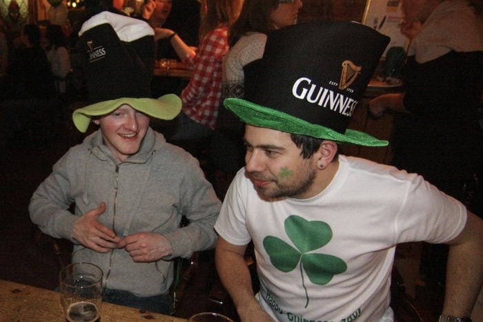 У нас с друзьями есть традиция, каждый год мы… ходим в какой нибудь паб праздновать День Святого Патрика, самый веселый праздник в году, когда мы напиваемся Гиннеса и танцуем под волынки. Каждый год, мы брали Ирландский флаг, смешные шляпы и бронировали какой нибудь нормальный Паб в центре Питера.