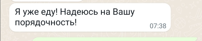 "Добрый день, Nomoshi! Я выиграла суд с логистической компанией! Правда пока денег не получила от них, но скоро Новый Год! Вы так помогли тогда, давайте я вам отправлю половину суммы моего иска. Скажите куда."