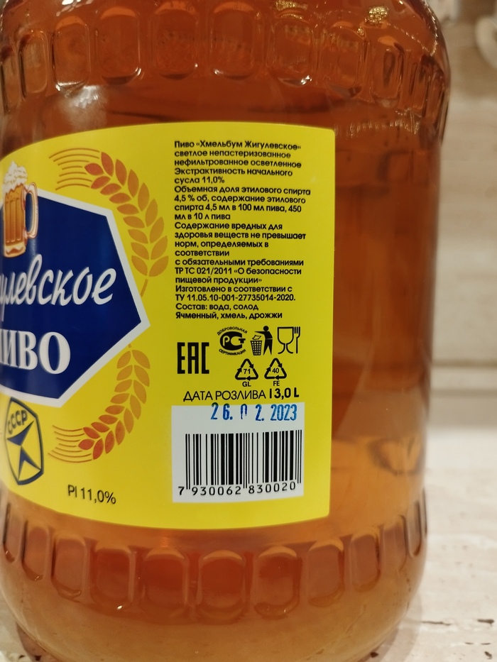 Ну, и в завершении вступления поговорим о цене. За три литра "советского крафта" запрашивают аж 1375 рублей. В пересчёте на стандартный объём получаем ~229р за 0,5л. Дорого ли? С точки зрения стоимости крафта в целом — нет. С точки зрения цены за "обычное нефильтрованное пиво" — определённо да. Особенно с учётом, что на рынке существуют более бюджетные и приемлемые альтернативы.