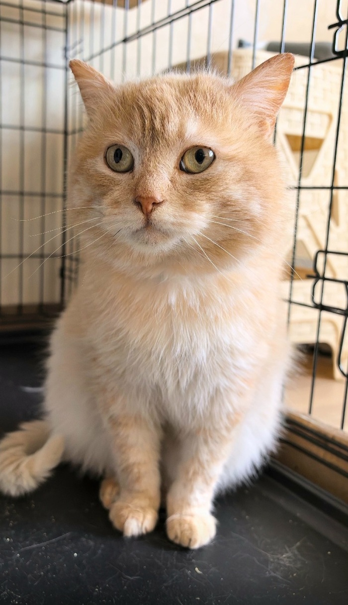 Персикового пупса пришлось временно пристроить на птичьих правах «куда-то сто двадцать пятым» к таким же "временным" в клетку. Ну неужели этот пирожочек не заслужил стать домашним и счастливым?