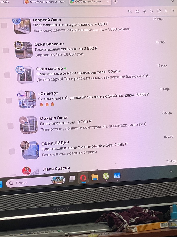 Написал я на более чем 20 объявлений по установке пластиковых окон(на фото не всё). Самое фиговое что у одного мастера (или фирмы) может быть по 10- 100 объявлений с разными названиями. И всю эту хрень нужно отфильтровать. Фото можно загружать только после ответа на вопрос.