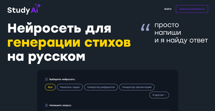 Study24.ai — нейросеть для составления стихов, быстрый старт без регистрации.