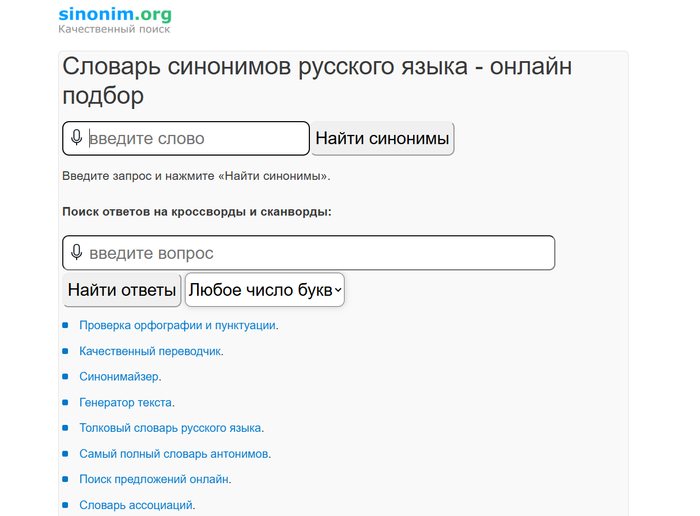 Sinonim.org — словарь синонимов и антонимов, помогает точнее подобрать рифмы, эпитеты и образы.