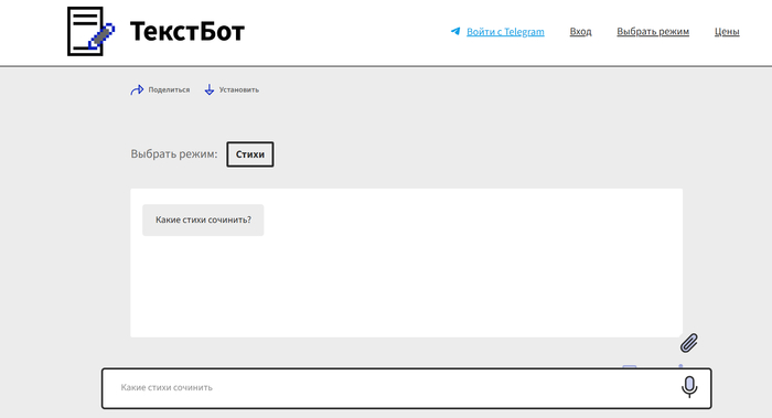 TextBot — ИИ для написания стихотворных текстов сам выбирает форму и размер, выдает несколько вариантов.