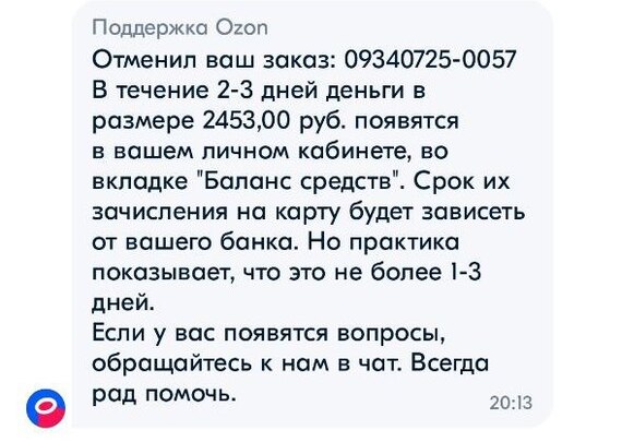Допустим, что товар куплен 01.07 — Озону переведены деньги