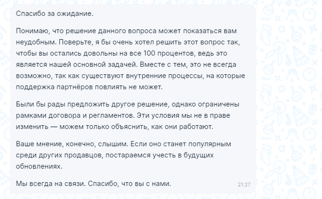 Если вы на это согласились и не заложили заранее в экономику проекта — поздравляю, в среднем вы потеряли половину прибыли, так как средняя рентабельность селлера на Озон обычно не превышает 12-15%. Впрочем, ребята охотно торгуются вплоть до 2.39% за выплату (данные на июль 2024 года), но не сразу — нужно отказываться получать выплаты и ждать звонка “менеджера, который сейчас обо всем договорится”.