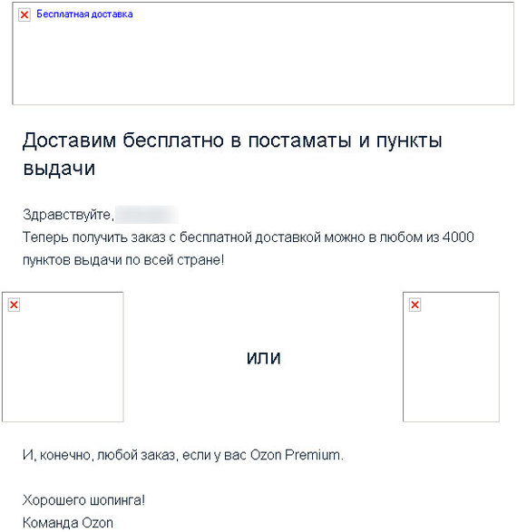 На днях получаю такое (картинки в письмах у меня отключены в частности потому, что с их помощью спамеры узнают, читали ли их послание):