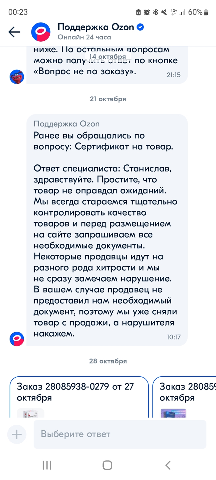 Даже писали вк. Там нам сказали не обращать внимание на их писанину, и что озон сам разберется